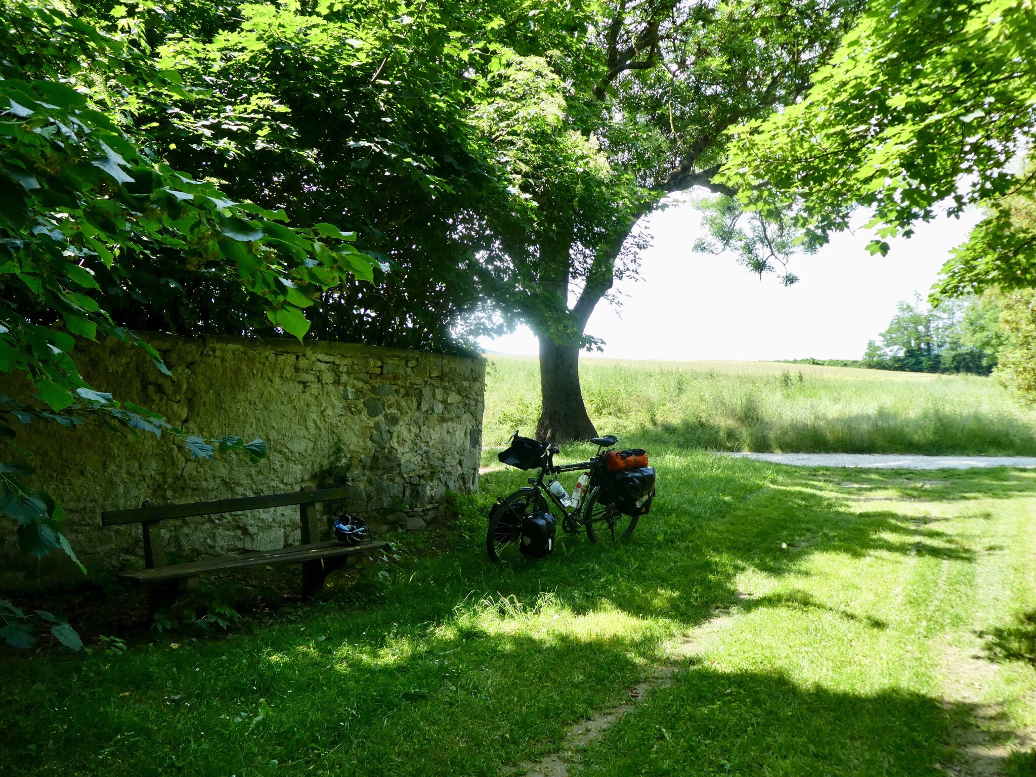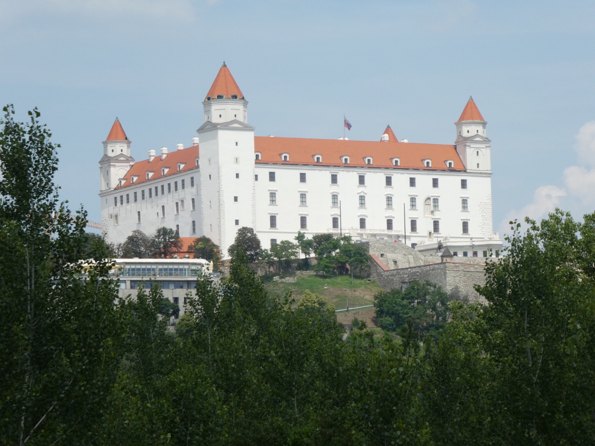 Yesterday, the bike paths were overcrowded with cyclists out enjoying the heat. Today, virtually none on the way to Bratislava. I guess the “in” part of the Danube bike Trail ends for most in Vienna. The surfaces and paths were also a step lower in quality, in part because of some major rerouting of EuroVelo 6 due to flood prevention work. However it was a fairly easy day done at leisure.
